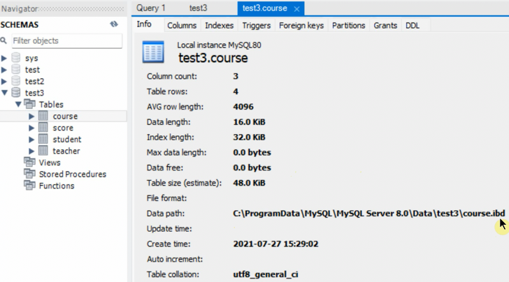 后发现,每个数据库都会有一个同名的文件夹,里面存放着库中的表。- 进一个文件夹,发现里面每一张表都对应有多种后缀名不同的文件。