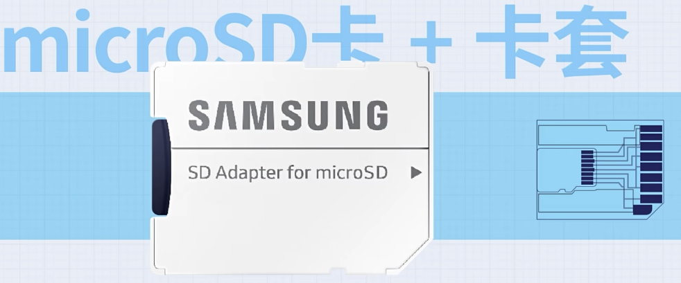 Micro SD卡可以通过卡套转接为标准SD卡。