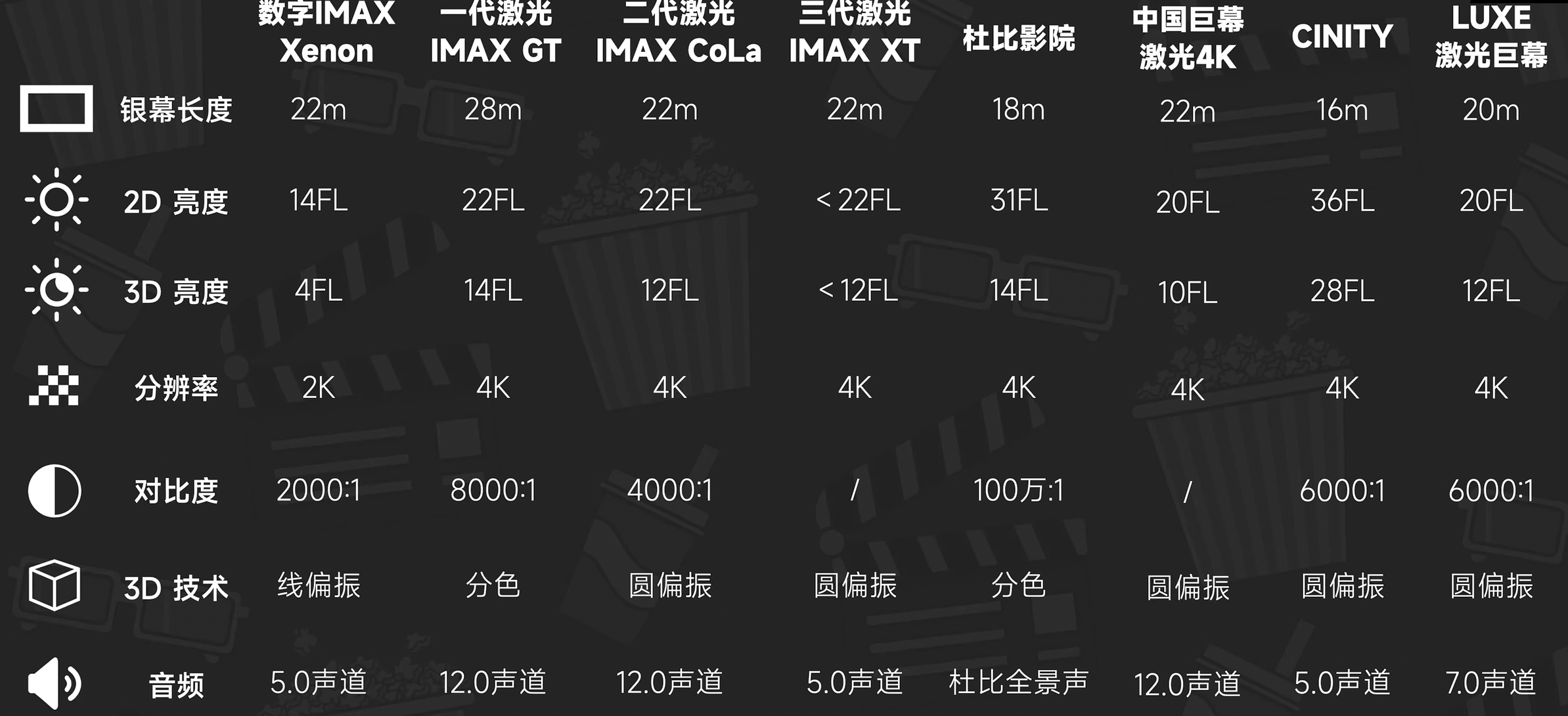 次之IMAX CoLa(Commercial Laser)、中国巨幕CGS。