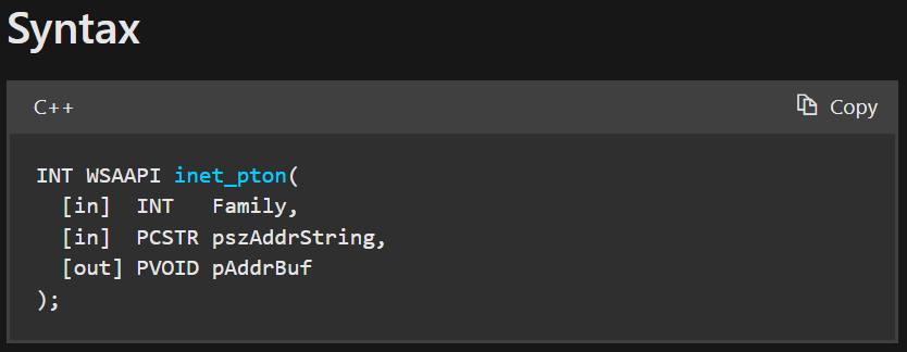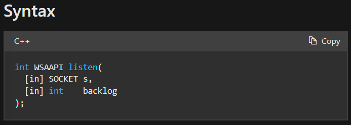 1 2 3 4 5 6 7 8 9 10 { if (SOCKET_ERROR == ::connect (sock, reinterpret_cast <const sockaddr*>(&server_addr), sizeof (server_addr))) { err = ::WSAGetLastError (); return 1 ; } }
