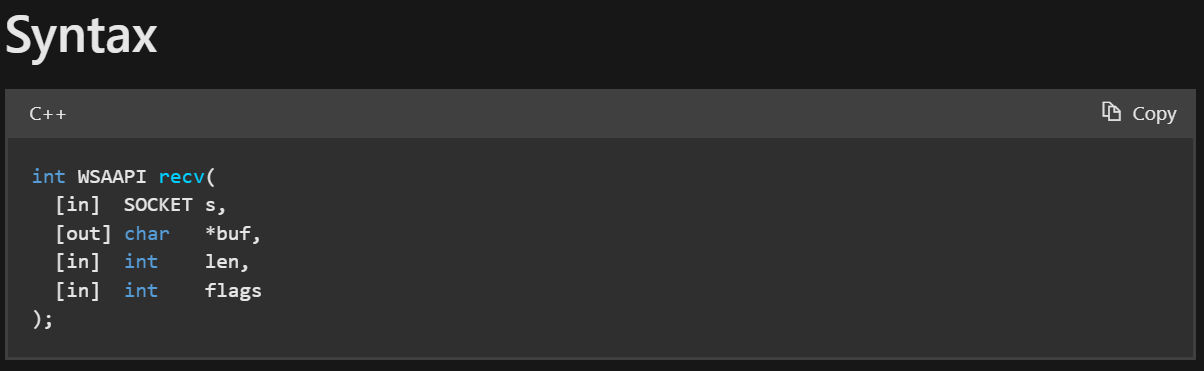 1 2 3 4 5 6 7 8 9 10 11 12 13 14 15 16 17 18 19 20 21 22 23 24 25 26 27 28 29 30 31 32 33 34 35 36 #include "network_task.h" #include <iostream> #include <WS2tcpip.h> #include <format> NetworkTask::NetworkTask (sockaddr_in client_addr, SOCKET work_sock) : _client_addr{ client_addr }, _work_sock{ work_sock } { } NetworkTask::~NetworkTask () { } void NetworkTask::run_task () { wchar_t addr_str[46 ] = L"" ; InetNtopW (AF_INET, reinterpret_cast <void *>(&_client_addr.sin_addr), addr_str, 46 ); std::wcout << std::format(L"client address: {}, port: {}\n" , addr_str, ntohs (_client_addr.sin_port)); std::wstring message{ L"Welcome to server!" }; ::send ( _work_sock, reinterpret_cast <const char *>(message.c_str ()), sizeof (wchar_t ) * message.size (), 0 ); wchar_t buf[100 ] = { 0 }; int bytes_received = ::recv (_work_sock, reinterpret_cast <char *>(buf), sizeof (wchar_t ) * sizeof (buf), 0 ); if (bytes_received > 0 ) { std::wcout << buf << std::endl; } ::closesocket (_work_sock); _work_sock = INVALID_SOCKET; }