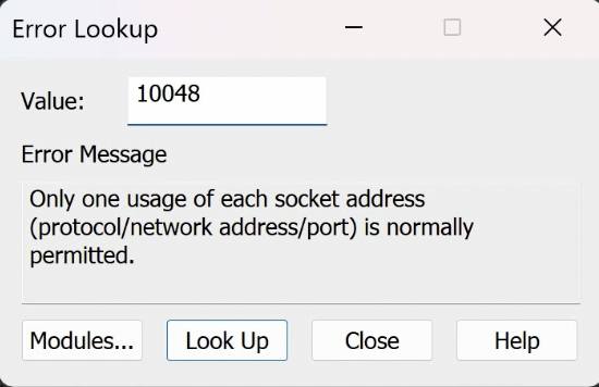 获得错误码+Error Lookup查询详细的connect失败描述: