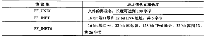 成员用于存放socket地址值。但是,不同的协议族的地址值具有不同的含义和长度,如下图所示。