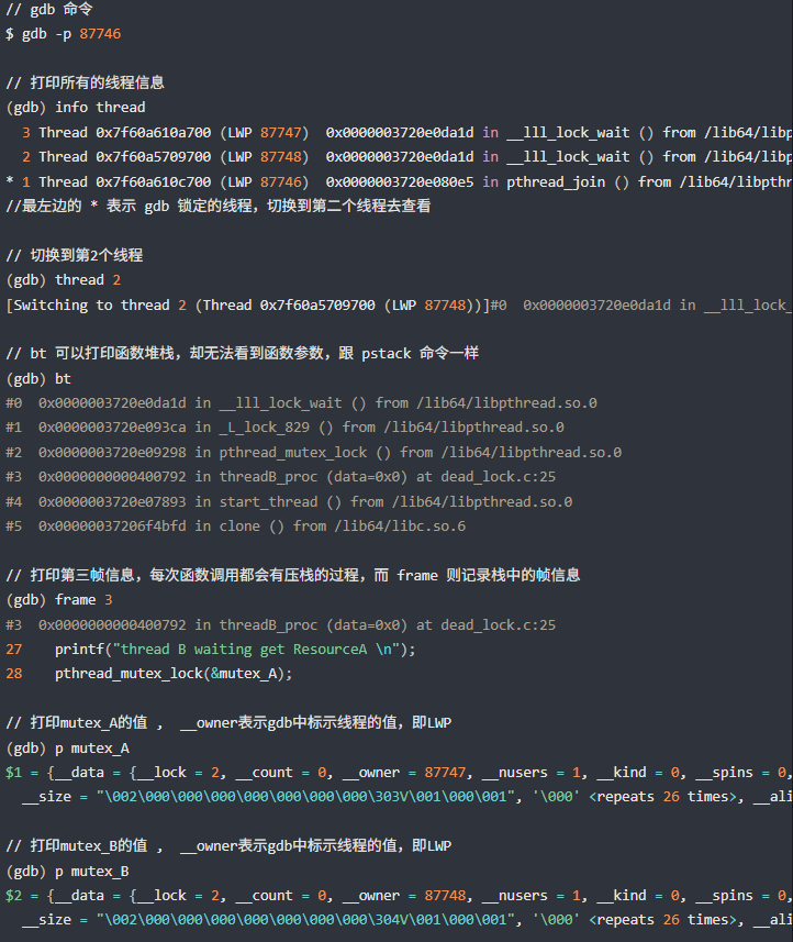 可以使用 gdb 工具进一步确认(gdb -p <pid>