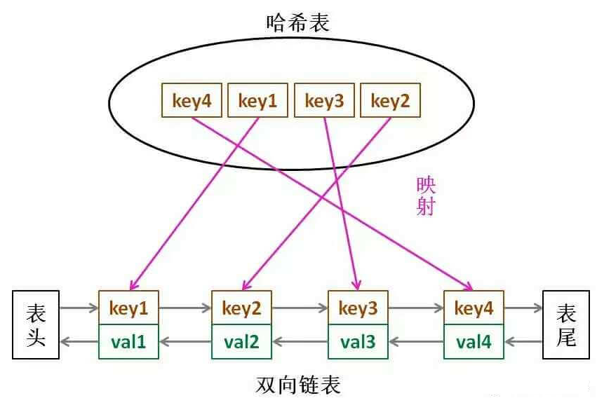 - 总的来说:使用 哈希表 + 严格排序的双链表