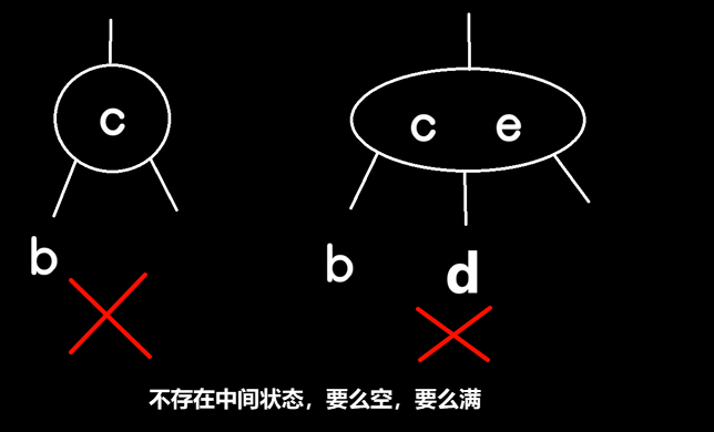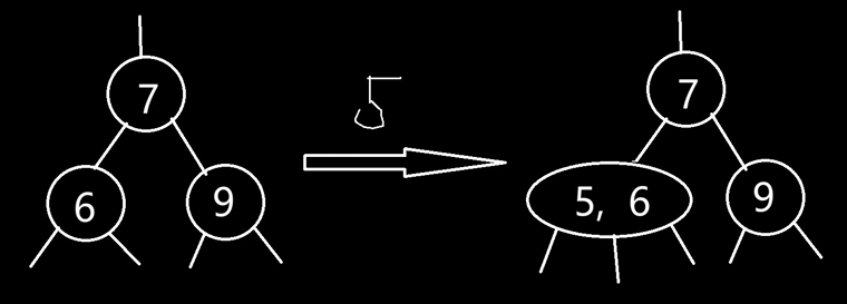 现在如果支持4-型节点,那么红链接支持出现在右侧。那么就会允许左连续两红、左红右红、左空右红的存在吗?不!仍然不允许,因为这仍是基于左倾的红黑树,实际仅能存在节点为黑色、左右字节点为红色的这样的情况(即左红右红)。