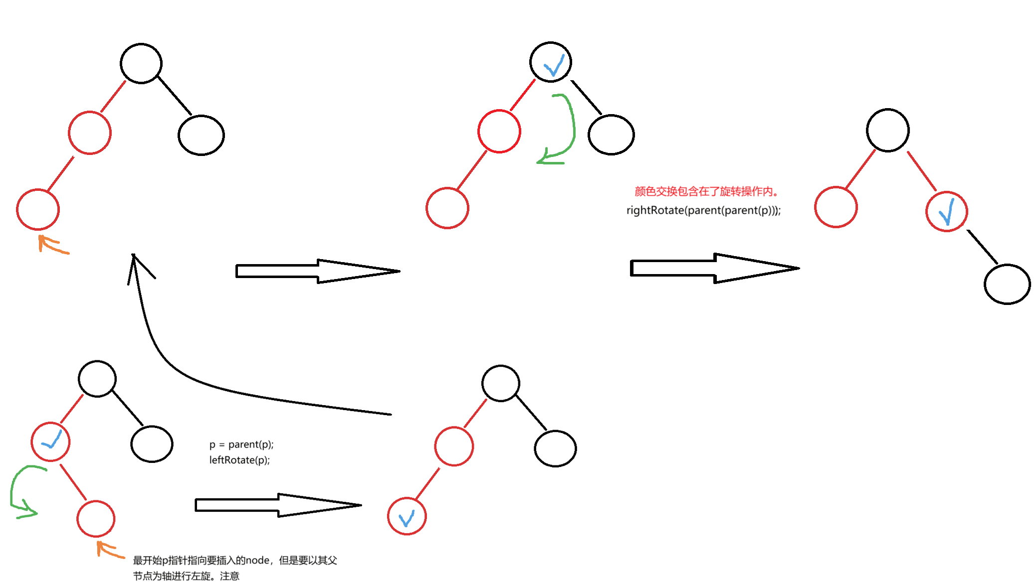分析出,红黑树的插入,最多旋转2次:先左旋、再右旋;或者先右旋、再左旋。
