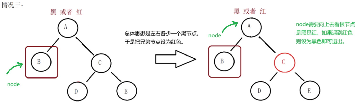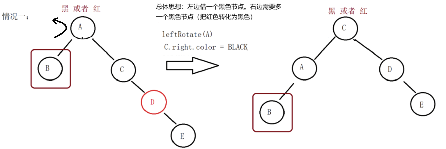 总之,借了右支的黑节点。右支需要改一个红色为黑色。