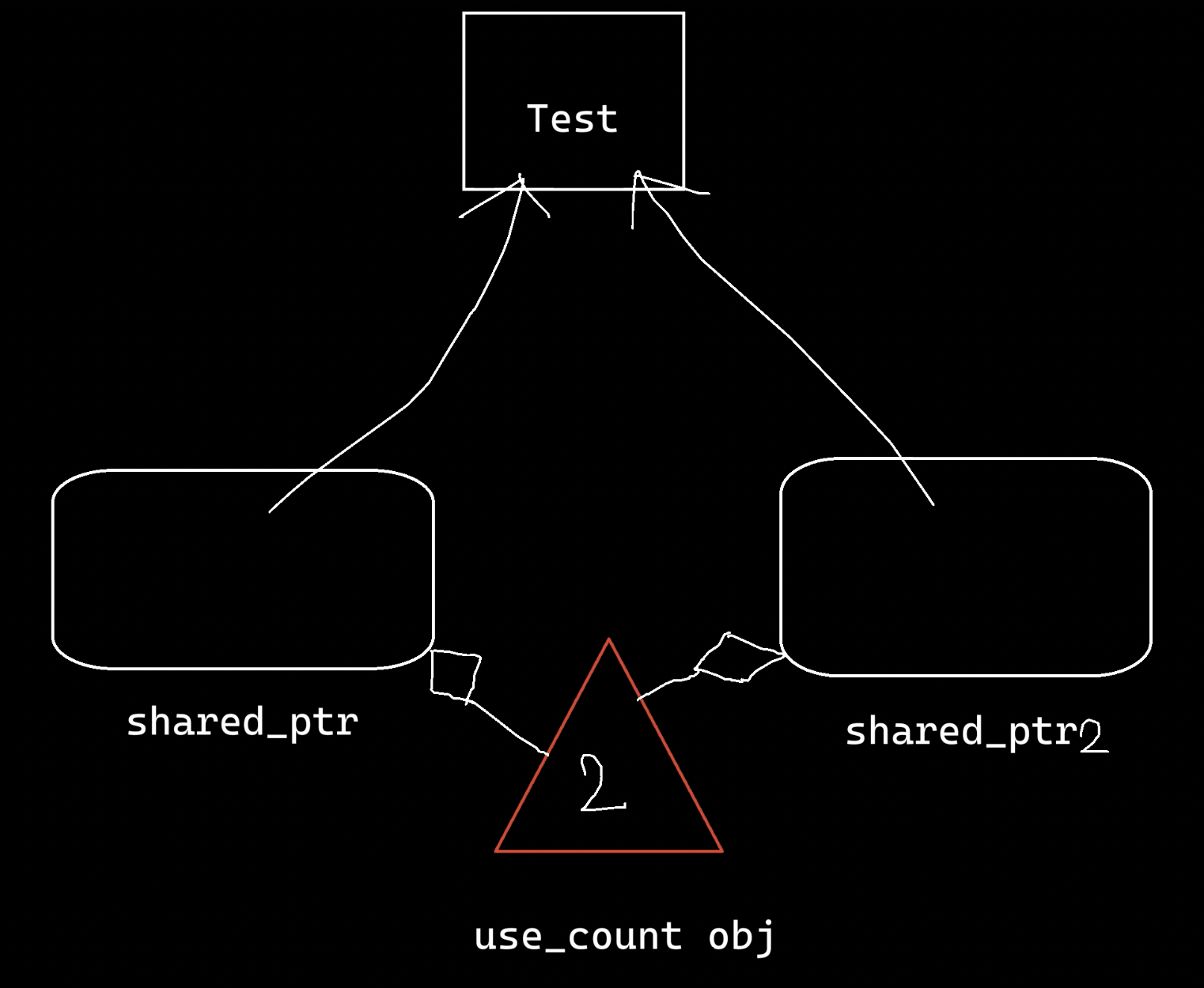 | void foo() { std::shared_ptr<Test> test(new Test); std::shared_ptr<Test> test2 = test; bool is_true = test.owner_before(test2); }