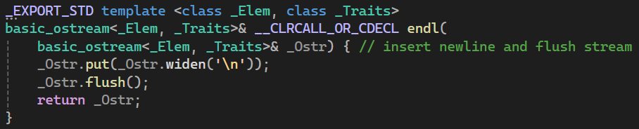 可以看到,endl实际上是一个函数。作用是往cout写入一个\n