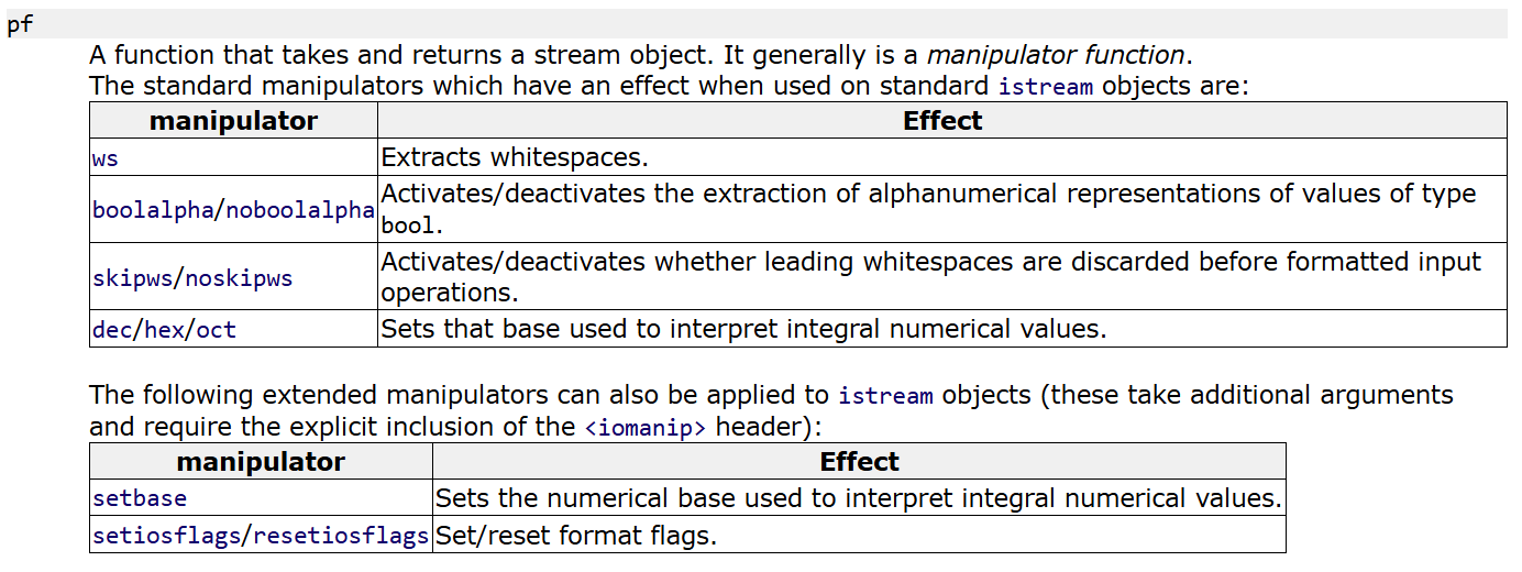 方法中值得注意的参数。pf是一个函数指针。可以填入不同的操作符(manipulator)。