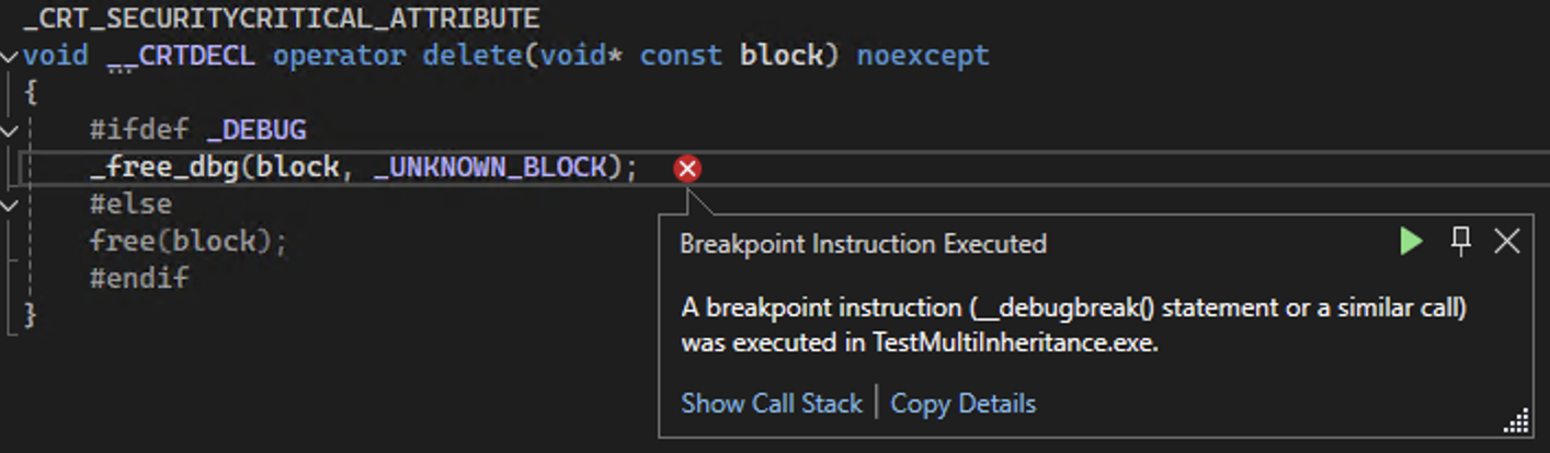 ,但最终会崩溃报错:(注意,以下讨论均基于Windows VS编译器环境,据说Linux g++