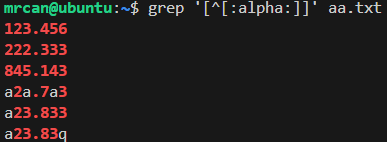 :表示除了字母以外grep '[^[:alpha:]]' file.txt