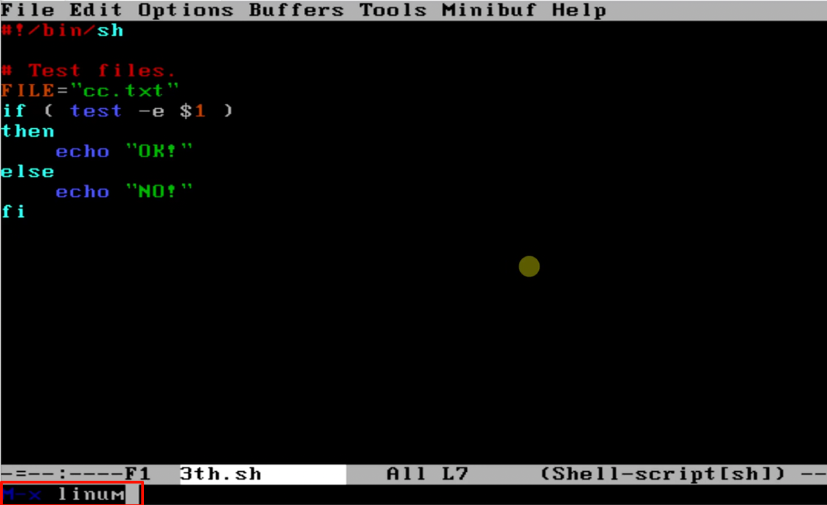 按一下ESC,再按一下x(映射Emacs的M-x命令)。在底行输入linum,表示:Line Num,设置显示行号。