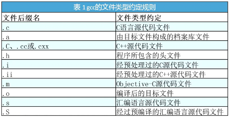 gcc的文件类型约定规则
