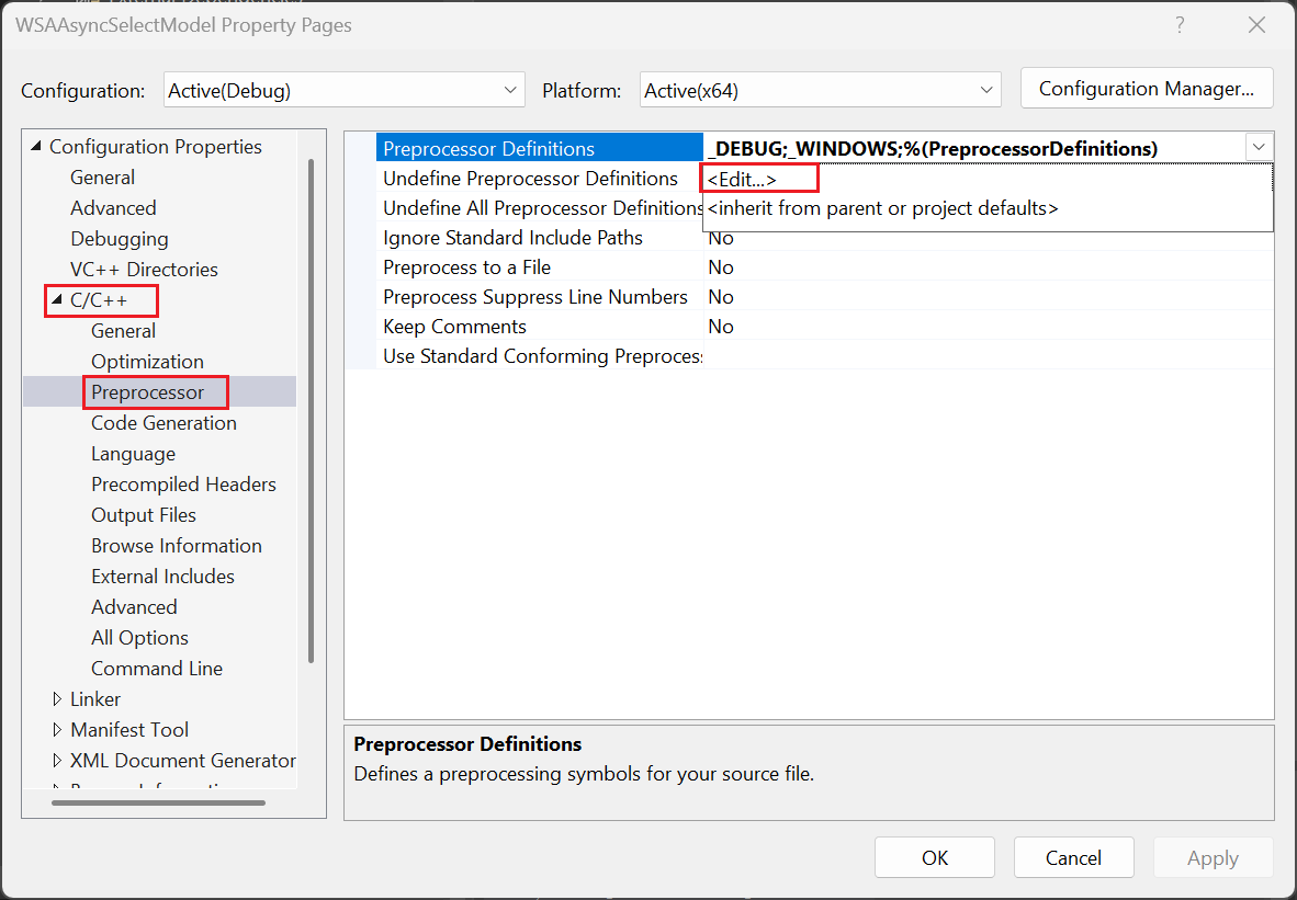 1 2 3 4 5 6 7 8 9 10 11 12 Build started at 8:10 AM... 1>------ Build started: Project: WSAAsyncSelectModel, Configuration: Debug x64 ------ 1>wsa_async_select.cpp 1>C:\Users\mrcan\source\repos\MetaLearning\WSAAsyncSelectModel\wsa_async_select.cpp(68,15): warning C4244: 'return': conversion from 'WPARAM' to 'int', possible loss of data 1>wsa_async_select.obj : error LNK2019: unresolved external symbol __imp_socket referenced in function wWinMain 1>wsa_async_select.obj : error LNK2019: unresolved external symbol __imp_WSAStartup referenced in function wWinMain 1>wsa_async_select.obj : error LNK2019: unresolved external symbol __imp_WSAGetLastError referenced in function wWinMain 1>wsa_async_select.obj : error LNK2019: unresolved external symbol __imp_WSAAsyncSelect referenced in function wWinMain 1>C:\Users\mrcan\source\repos\MetaLearning\x64\Debug\WSAAsyncSelectModel.exe : fatal error LNK1120: 4 unresolved externals 1>Done building project "WSAAsyncSelectModel.vcxproj" -- FAILED. ========== Build: 0 succeeded, 1 failed, 0 up-to-date, 0 skipped ========== ========== Build completed at 8:10 AM and took 00.582 seconds ==========