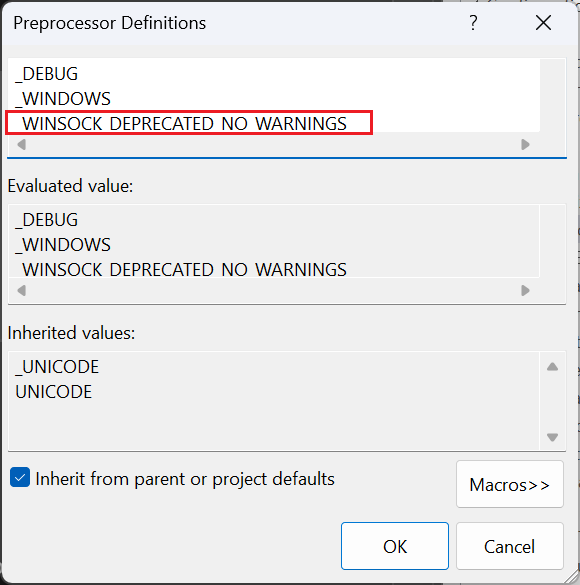 被废弃了,如果要使用,需要define _WINSOCK_DEPRECATED_NO_WARNINGS