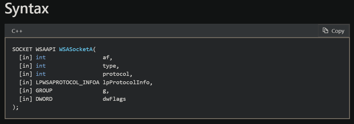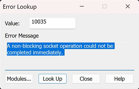 1 2 3 4 5 6 7 8 9 10 11 12 13 14 15 16 17 18 19 20 21 22 23 24 25 26 27 28 29 30 31 32 33 34 35 #include <winsock2.h> #include <stdio.h> #pragma comment(lib, "Ws2_32.lib" ) void main () { WSADATA wsaData; int iResult; u_long iMode = 0 ; iResult = WSAStartup (MAKEWORD (2 ,2 ), &wsaData); if (iResult != NO_ERROR) printf ("Error at WSAStartup()\n" ); SOCKET m_socket; m_socket = socket (AF_INET, SOCK_STREAM, IPPROTO_TCP); if (m_socket == INVALID_SOCKET) { printf ("Error at socket(): %ld\n" , WSAGetLastError ()); WSACleanup (); return ; } iResult = ioctlsocket (m_socket, FIONBIO, &iMode); if (iResult != NO_ERROR) printf ("ioctlsocket failed with error: %ld\n" , iResult); }